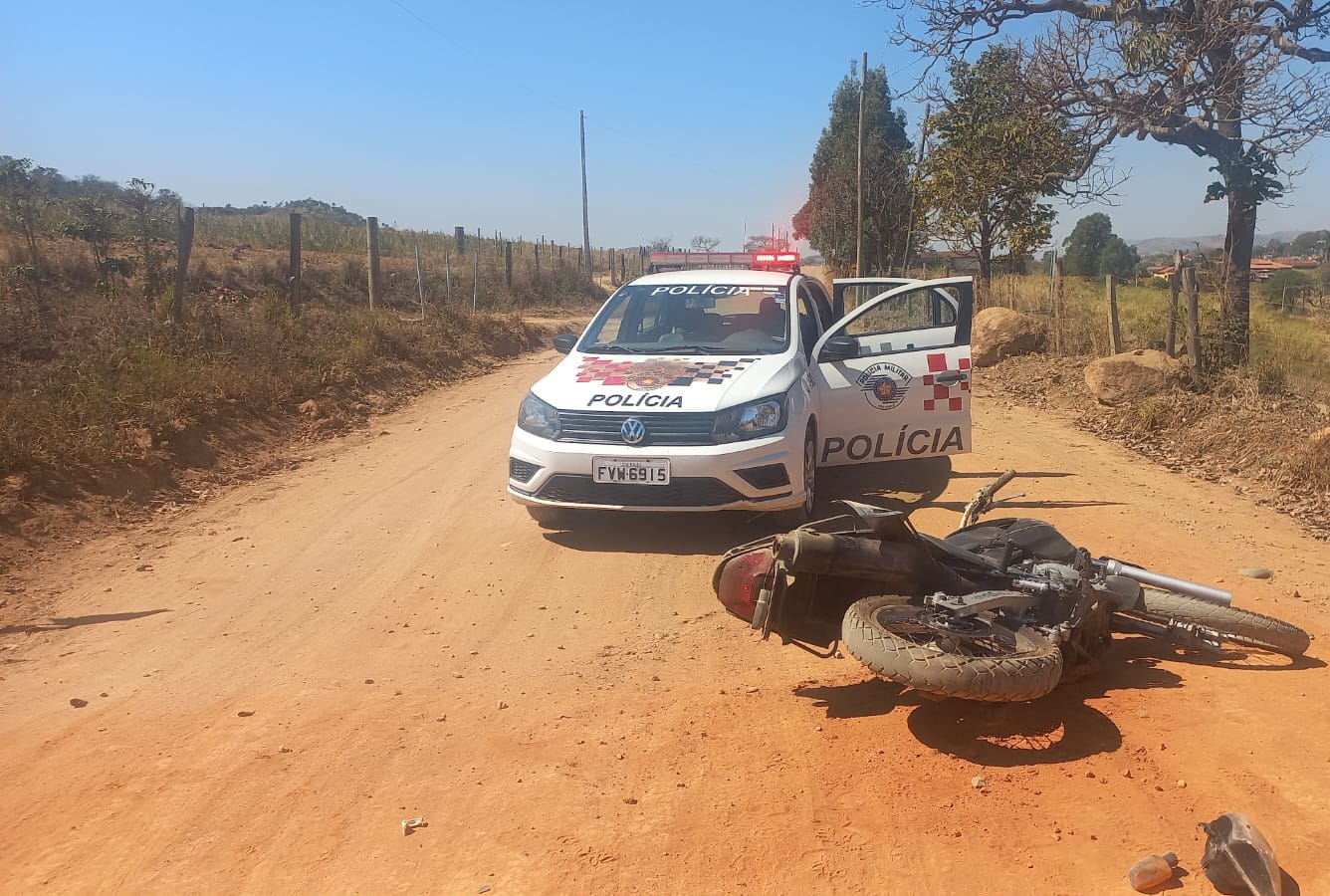 Durante o acompanhamento, os indivíduos perderam o controle da motocicleta em uma lombada e caíram. Ambos tentaram fugir a pé, mas apenas o condutor, M.V.B.F., 22 anos, foi detido. Ele sofreu escoriações e foi levado ao Pronto-Socorro pelo SAMU.