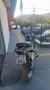 A polícia constatou que a placa utilizada na moto (ECP-9662) era falsa e pertencia a outro veículo. Após uma investigação mais detalhada, foi identificada a verdadeira placa da motocicleta, DNR-3F70, de Porteirinha, Minas Gerais. Além disso, os sinais de identificação do veículo (chassi e número do motor) estavam suprimidos.