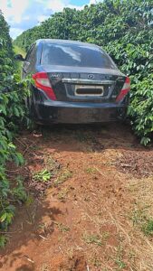Ao notarem a presença da viatura policial, os indivíduos iniciaram uma tentativa de fuga. Para tentar despistar os agentes, eles esconderam o carro em uma plantação de café nos limites do perímetro urbano de Itamogi.