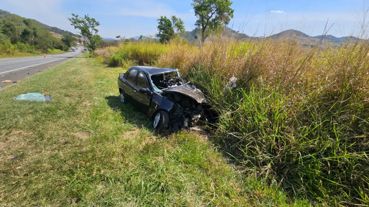Com o impacto, o GM/Classic rodou na pista e parou na faixa de domínio. Já o caminhão teve o eixo solto, invadiu a contramão e parou no acostamento oposto.