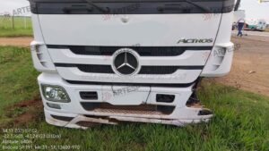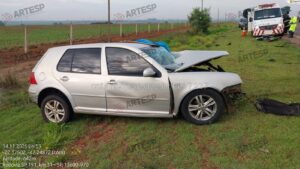 A colisão envolveu um veículo Volkswagen Golf, de cor prata, e um caminhão que trafegava no sentido contrário.
