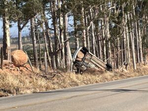 Segundo informações apuradas pela reportagem no local, o motorista seguia pela via quando uma pedra atingiu o pneu do veículo, possivelmente causando dano e levando à perda de controle. O carro colidiu contra uma pedra e, em seguida, contra árvores às margens da estrada.