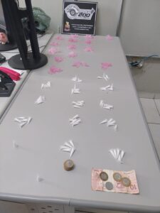 ​Durante a abordagem, o adolescente confessou que estava comercializando entorpecentes no local com o objetivo de “obter uma vida financeira melhor”. Ele admitiu que estava prestes a vender o pino de cocaína para a ocupante do veículo.