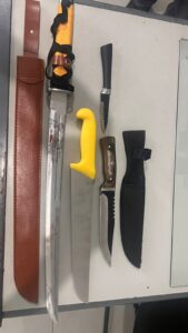 Foram localizadas 04 facas, sendo duas delas de fabricação artesanal;