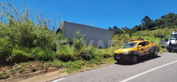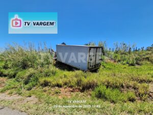 CAMINHÃO CARREGADO COM CARNES SOFRE ACIDENTE NA SP-215 ENTRE VARGEM GRANDE DO SUL E SÃO ROQUE DA FARTURA