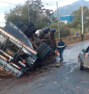 O caminhão se deslocava no sentido Campestrinho-Poços de Caldas quando o motorista perdeu o controle em um trecho de descida acentuada. O impacto da batida fez com que parte da carga ficasse espalhada pela via.