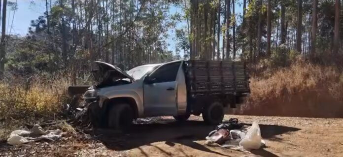Uma caminhonete VW Amarok foi localizada na manhã de sexta-feira (1º) acidentada em uma estrada vicinal no bairro Muro de Pedras, zona rural de Ipuiúna (MG). De acordo com a Polícia Militar, o veículo transportava duas vacas leiteiras sedadas, supostamente furtadas.