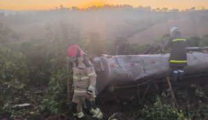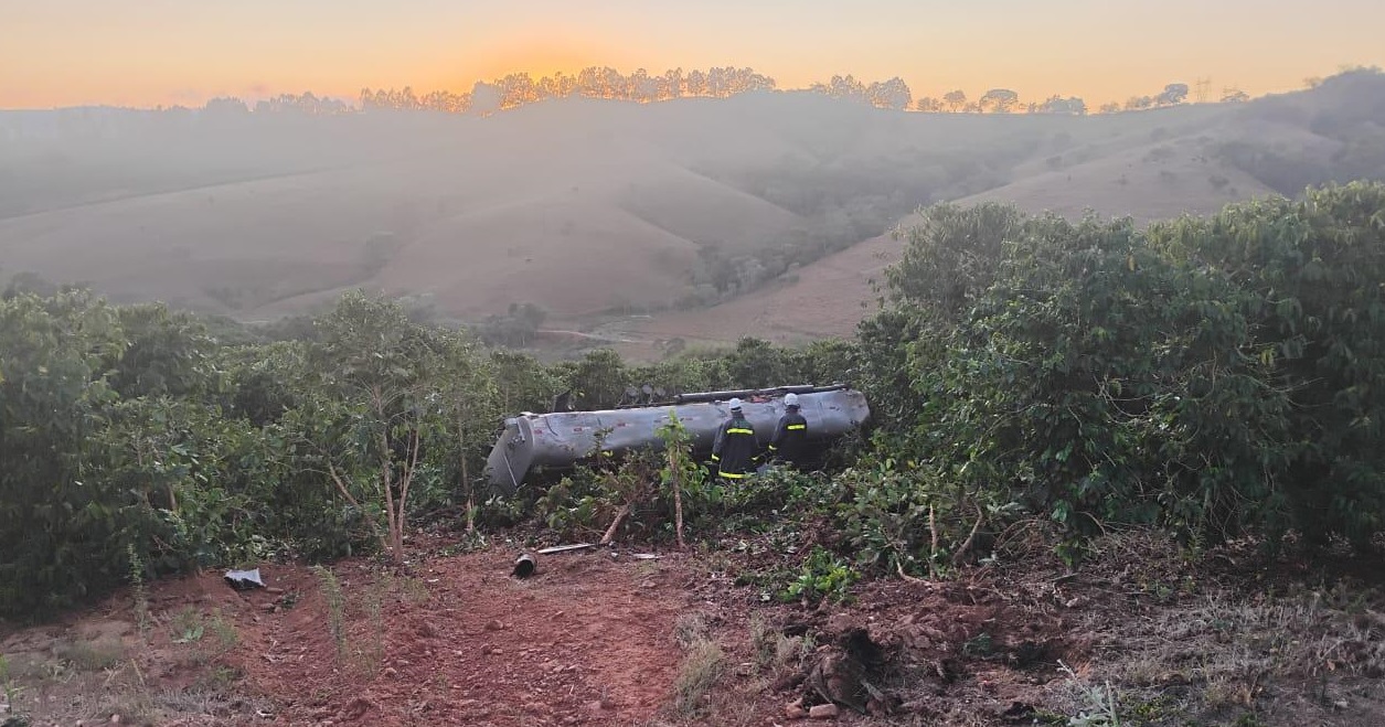 Um caminhão-tanque que transportava cerca de 15 mil litros de combustível capotou na noite desta sexta-feira (26/09), por volta das 19h30min, na estrada rural que liga o município de Nova Resende ao distrito de Petúnia. O acidente provocou o vazamento da carga e levou à interdição total da via devido ao alto risco de explosão.