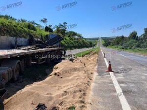 Segundo as informações fornecidas pela Renovias, concessionária que administra o trecho, o veículo seguia no sentido norte quando o motorista, por motivo ainda não esclarecido, perdeu o controle da direção. A carreta invadiu o canteiro central, tombou e espalhou parte da carga sobre as faixas 1 e 2 do sentido contrário, bloqueando completamente o tráfego que seguia para o sul.