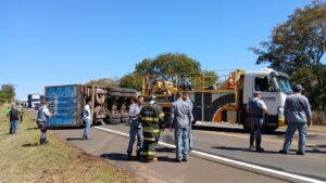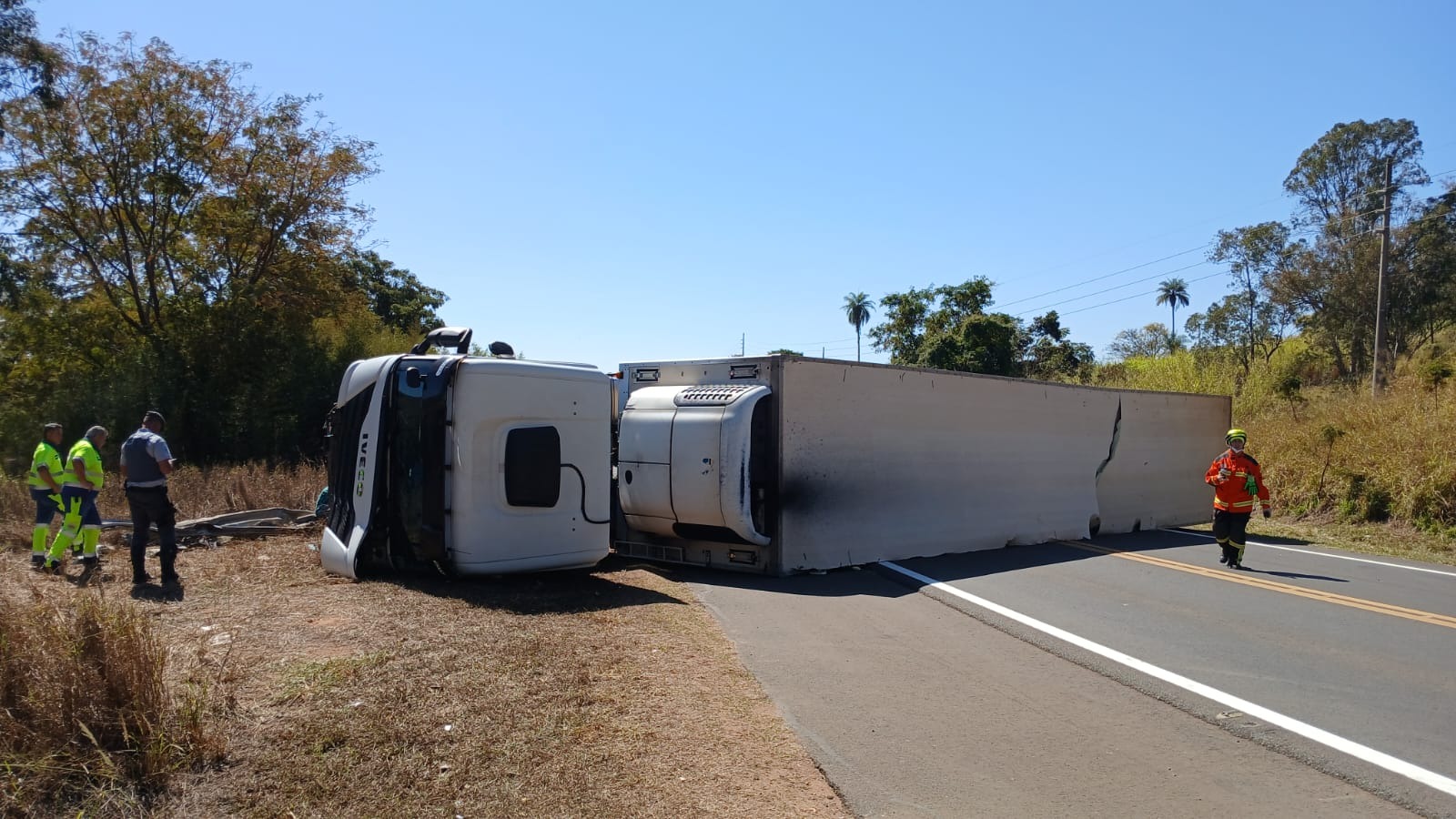 Um acidente foi registrado no final da manhã desta sexta-feira (1º) na Rodovia SP-350, entre as cidades de Itobi e São José do Rio Pardo. Uma carreta carregada com derivados de leite tipo A, pertencente a uma fazenda da região, tombou após o pneu dianteiro estourar.