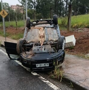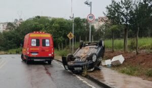 Um acidente de trânsito mobilizou equipes de resgate do Corpo de Bombeiros Militar na manhã deste sábado (03), em Poços de Caldas. O condutor de um Fiat Palio ficou retido no veículo após perder o controle direcional e capotar na Avenida Padre André Hector Bouchard, na altura do número 725.
