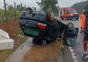 Duas guarnições do Corpo de Bombeiros foram deslocadas para o local da ocorrência. Ao chegarem, os militares constataram que a vítima não conseguia sair do automóvel por conta própria, permanecendo retida no interior do carro capotado.