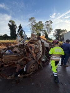 O Corpo de Bombeiros foi acionado imediatamente para o local, onde constatou a gravidade da colisão. Na caminhonete trafegavam duas pessoas; infelizmente, uma delas não resistiu aos ferimentos e teve o óbito confirmado ainda no local.