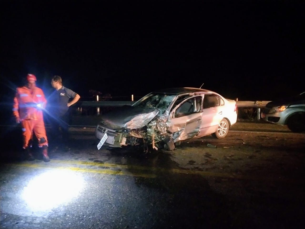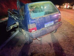 ​No local, as equipes de resgate encontraram um violento impacto entre dois veículos: um Volkswagen Voyage e um Fiat Uno.