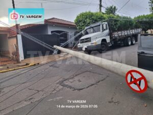 Um grave acidente de trânsito mobilizou equipes de emergência na madrugada deste sábado (14), no bairro Jardim Paraíso 1. Um veículo de luxo colidiu contra a estrutura da rede elétrica na Rua Felipe Moisés Felipe, causando a queda de dois postes e o bloqueio total da via.