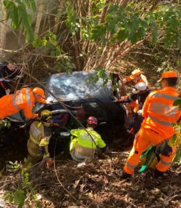 Devido ao emaranhado da lataria, que prendia a condutora, os bombeiros precisaram realizar o corte e a expansão da estrutura do veículo para realizar o resgate. Após a remoção segura da porta, a vítima foi retirada com cuidado.