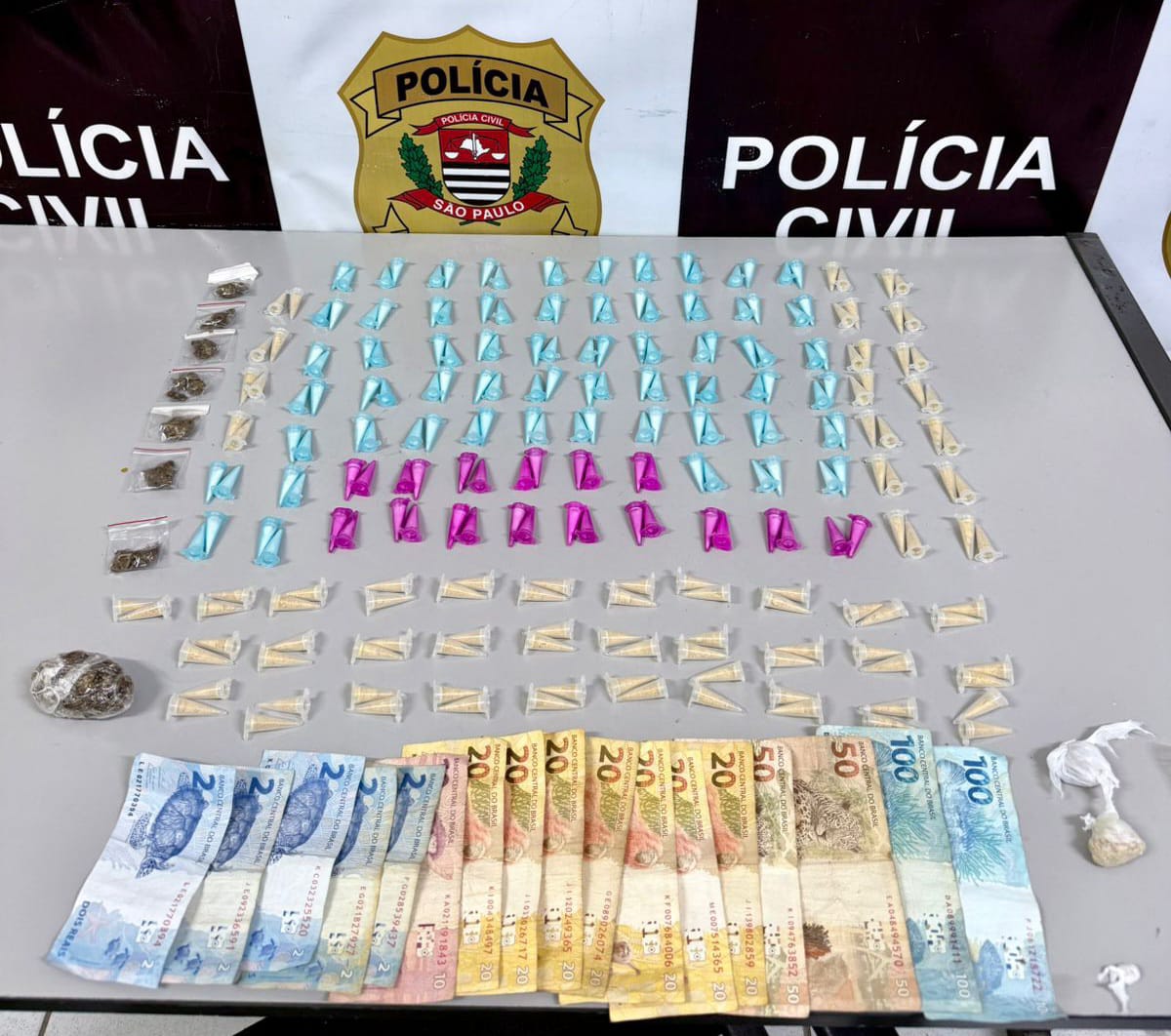 A Polícia Civil deflagrou nesta terça-feira (16/12/2025) a Operação denominada “Família VR” e prendeu um jovem de 19 anos em flagrante por tráfico de drogas e receptação de veículo. A ação, realizada no bairro Vale do Redentor II, resultou na apreensão de uma grande quantidade de entorpecentes, dinheiro e uma motocicleta com queixa de furto.