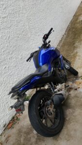 No mesmo cômodo onde as drogas estavam armazenadas, foi localizada uma motocicleta Yamaha/FZ15 Fazer ABS, de cor Azul. O jovem assumiu a propriedade do veículo.