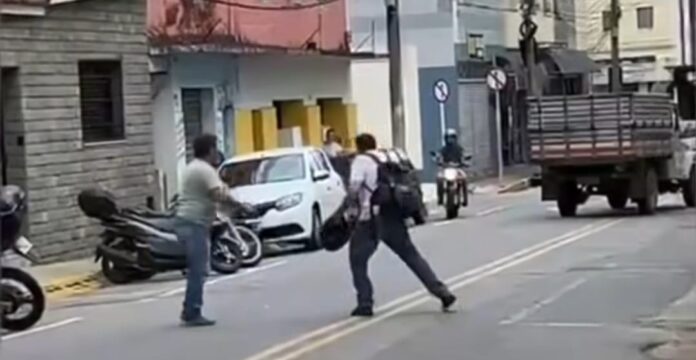 O que deveria ter sido um susto no trânsito evoluiu rapidamente para uma discussão acalorada. Os dois envolvidos pararam seus veículos e iniciaram um confronto físico.