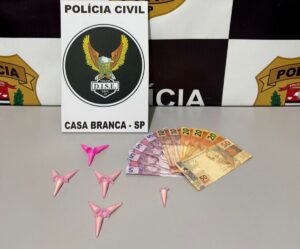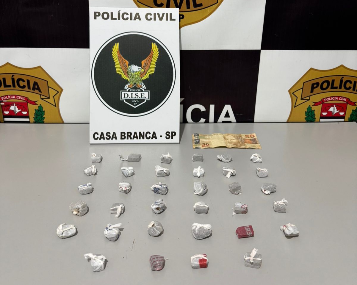 Dando continuidade às diligências, a equipe da DISE localizou o segundo suspeito, de 21 anos, em Casa Branca. O indivíduo foi flagrado com porções de maconha e outra quantia em dinheiro. A rapidez da abordagem impediu que o entorpecente fosse totalmente distribuído no município.