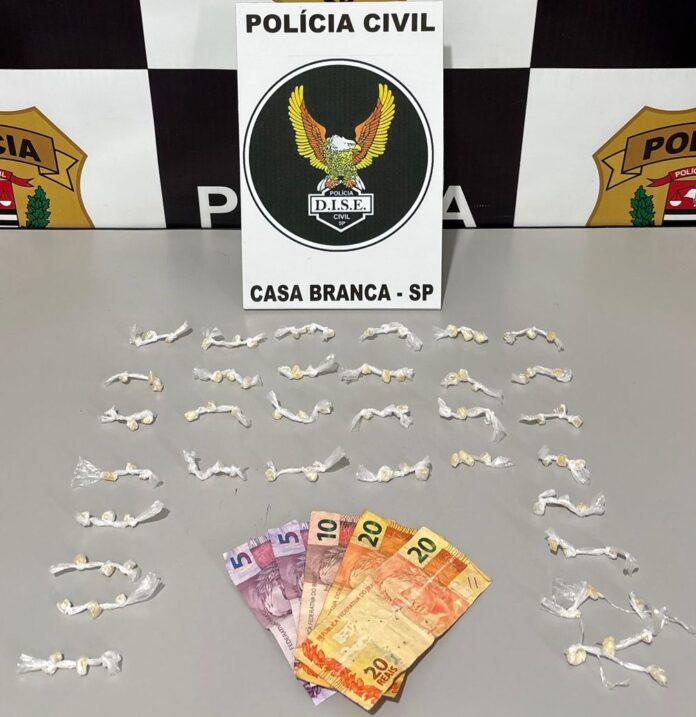 Nesta tarde de segunda-feira, 14 de julho, os agentes da Delegacia de Investigações Sobre Entorpecentes (DISE) de Casa Branca, surpreenderam um homem de 43 anos promovendo a venda da drogas no Bairro Santa Terezinha, em Santa Cruz das Palmeiras.