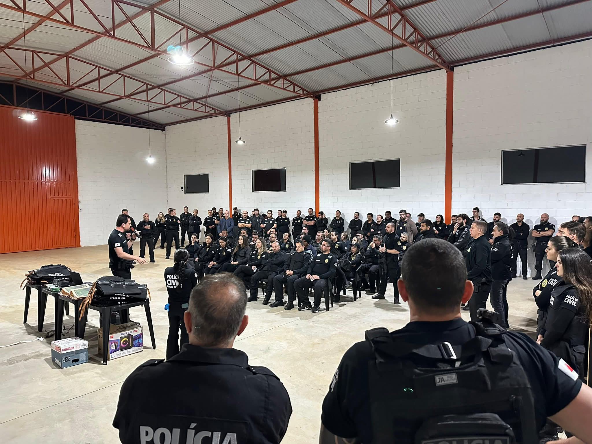 A ação contou com a atuação de 104 policiais e teve como objetivo desarticular uma organização criminosa voltada ao tráfico de drogas e crimes