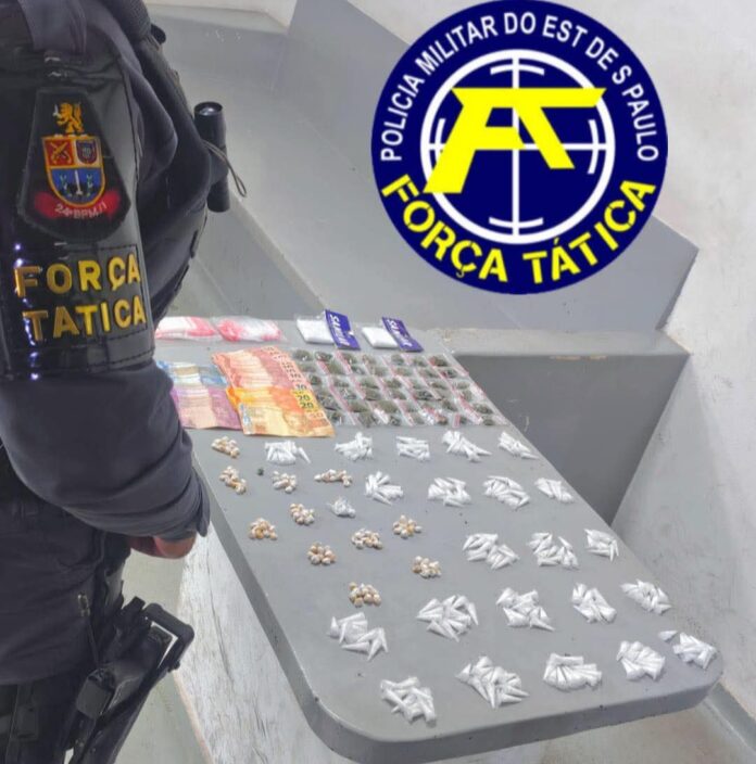 Uma ação da Força Tática do 24º Batalhão da Polícia Militar (PM) resultou na prisão de um homem e na apreensão de um adolescente por tráfico de drogas, em Vargem Grande do Sul, na noite da última quinta-feira (20). A ocorrência foi registrada na Rua João Osório Teixeira, um local já conhecido pelo comércio de entorpecentes.