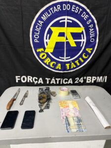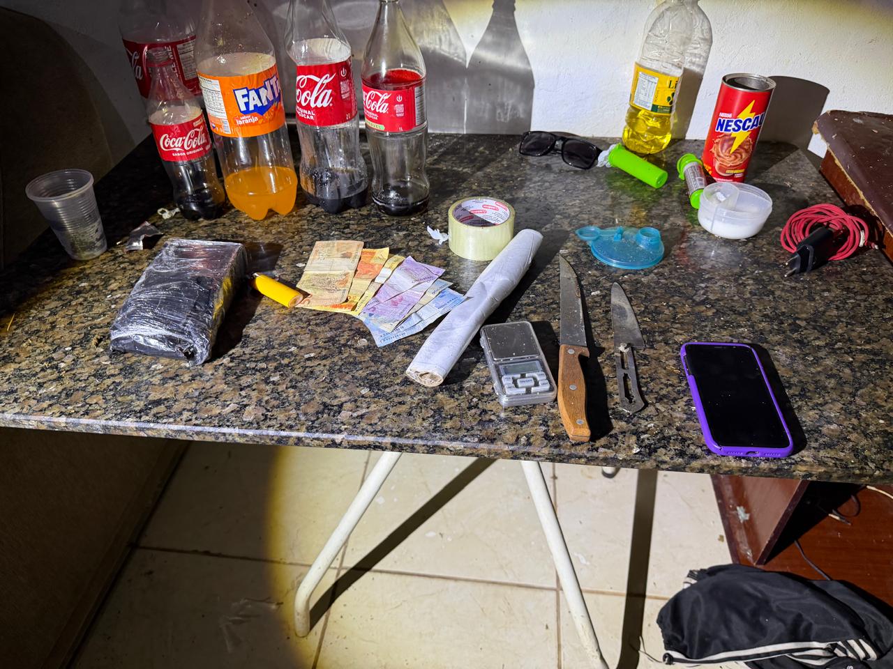 Após a confissão, Alisson admitiu que utilizava a residência abandonada para armazenar e embalar as drogas. No interior do imóvel, os policiais da Força Tática, com o apoio da equipe Tático I-24084, localizaram:
