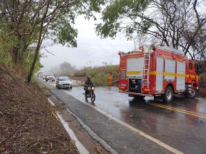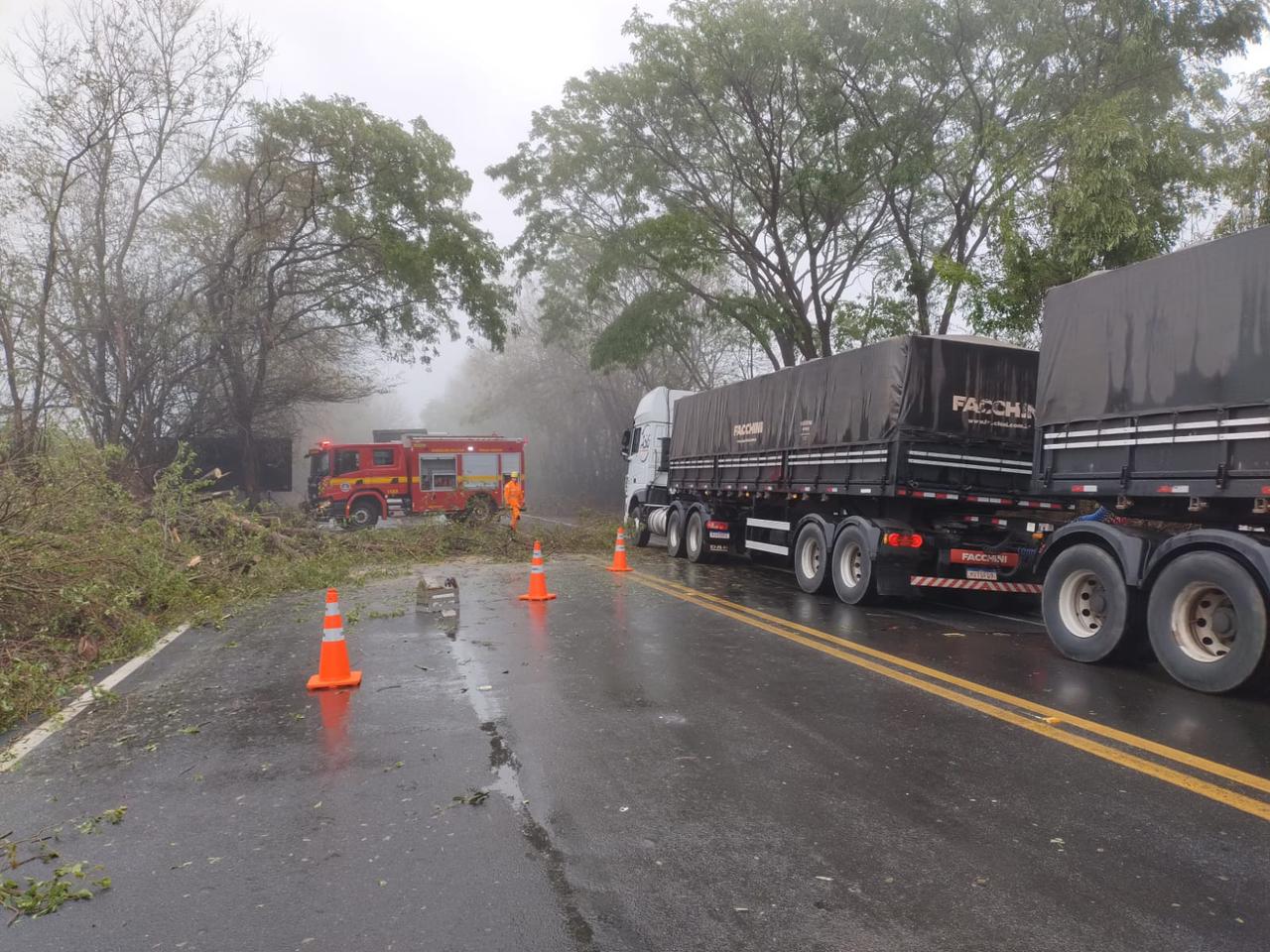Além do bloqueio principal, o Corpo de Bombeiros identificou a queda de aproximadamente outras cinco árvores ao longo da BR-491, que ocasionaram obstruções parciais em diferentes trechos e demandaram atenção das equipes.