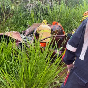 De acordo com informações do Corpo de Bombeiros Militar, a equipe foi acionada para realizar o desencarceramento de um homem, com idade estimada entre 25 e 30 anos. A vítima estava retida na estrutura metálica do veículo de passeio, apresentando fraturas em ambos os braços e sinais de agitação motora.