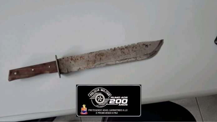 Diante das evidências e do relato da vítima, o indivíduo recebeu voz de prisão em flagrante. A arma branca utilizada no crime foi apreendida pelos militares.