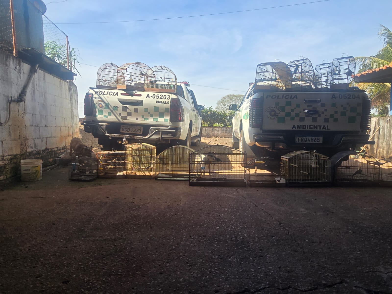 As equipes da 5ª BPAmb – 2ª Cia – 1º Pel encontraram 34 aves silvestres mantidas em gaiolas, entre elas espécies nativas como o Trinca-ferro, o Canário-da-terra e o Papagaio-verdadeiro. Durante a inspeção, os policiais identificaram que a maioria dos pássaros não possuía anilhas de identificação, e duas anilhas existentes apresentavam sinais de adulteração.