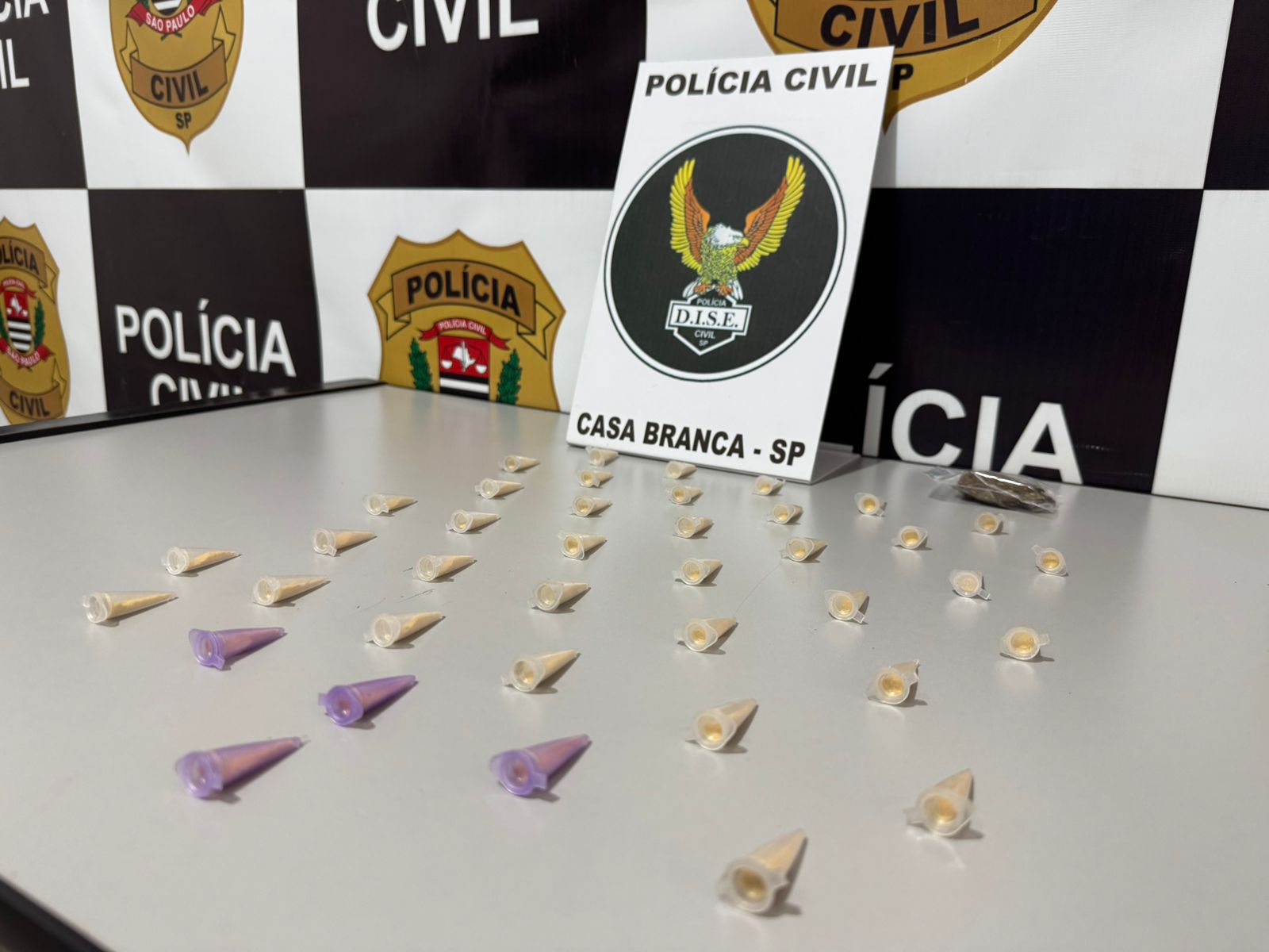 Nesta manhã de quinta-feira, 02 de outubro, os agentes da Delegacia de Investigações Sobre Entrpecentes (DISE) de Casa Branca surpreenderam uma mulher de 25 anos mantendo em sua residência 39 porções de cocaína e um tablete de maconha, no Bairro Domingos de Syllos, em São José do Rio Pardo.