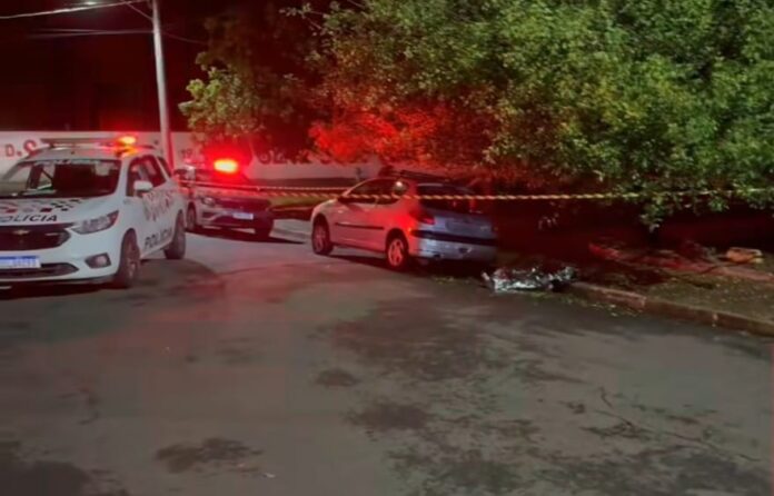 A Polícia Militar (PM) foi acionada após a localização do corpo masculino, que estava caído ao solo em decúbito ventral (de bruços), atrás de um veículo Peugeot/206, com placas de Araras/SP.