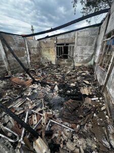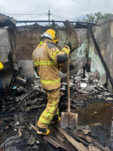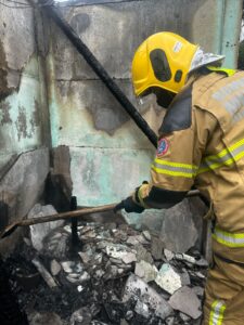 Ao chegarem ao local, os militares constataram que as chamas já haviam sido controladas pela equipe da Defesa Civil municipal, que realizou o combate inicial ao fogo. A guarnição dos Bombeiros assumiu então o trabalho de rescaldo, um procedimento crucial para eliminar quaisquer focos remanescentes e assegurar que a estrutura atingida estivesse completamente segura.