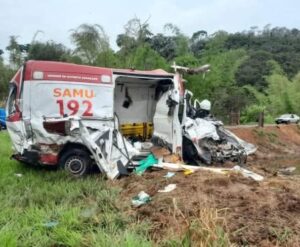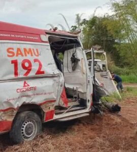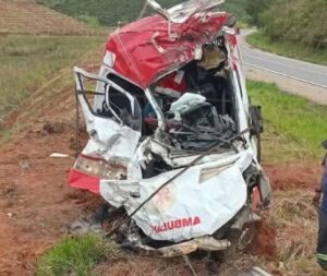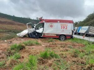 O acidente ocorreu enquanto a ambulância realizava o transporte da paciente para atendimento hospitalar.