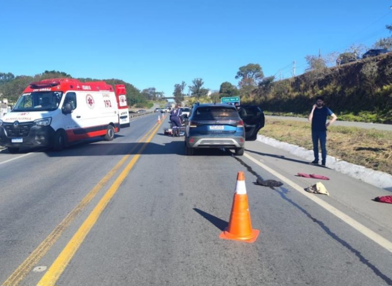 À frente da ocorrência, policiais militares rodoviários foram informados – pelo rapaz do carro – que o dono da motocicleta entrou na contramão, não tendo sido possível evitar a colisão (a versão será apurada pela perícia técnica da PCMG).