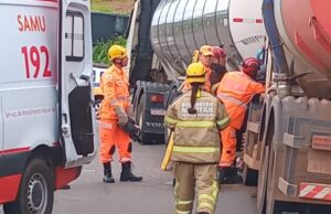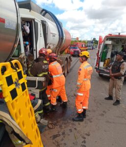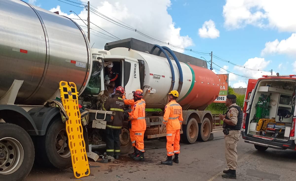 ​Com o impacto, o condutor do caminhão, um homem de 65 anos, ficou preso na cabine do veículo. O Corpo de Bombeiros de Alfenas enviou um comboio com três viaturas para realizar a operação de salvamento veicular.