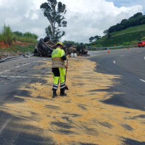 O Corpo de Bombeiros de Guaxupé foi mobilizado na manhã desta quinta-feira (29) para atender ao tombamento de uma carreta na BR-146. O acidente aconteceu por volta das 09h, no trecho sinuoso conhecido como Serra de São Pedro da União, local que tem registrado ocorrências frequentes.