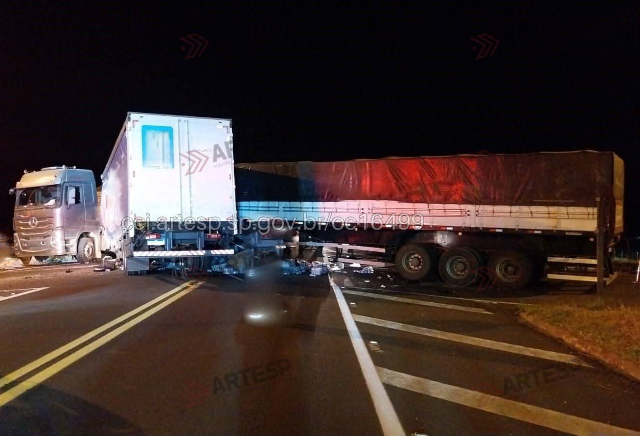 Um grave acidente na noite desta segunda-feira (15) resultou na morte de um motorista e na interdição total da Rodovia SP-352, em Itapira. A colisão ocorreu por volta das 20h49 no km 173,7 e envolveu um caminhão carregado com frascos de água e um bitrem transportando sal para gado.