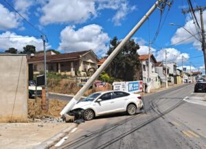 Um acidente de trânsito mobilizou o Corpo de Bombeiros e causou preocupação com riscos de choque elétrico no início da tarde deste sábado, 28 de março, em Guaxupé (MG). O incidente ocorreu na Avenida Jeremias Zerbini, onde um veículo de passeio colidiu violentamente contra um poste da rede elétrica.