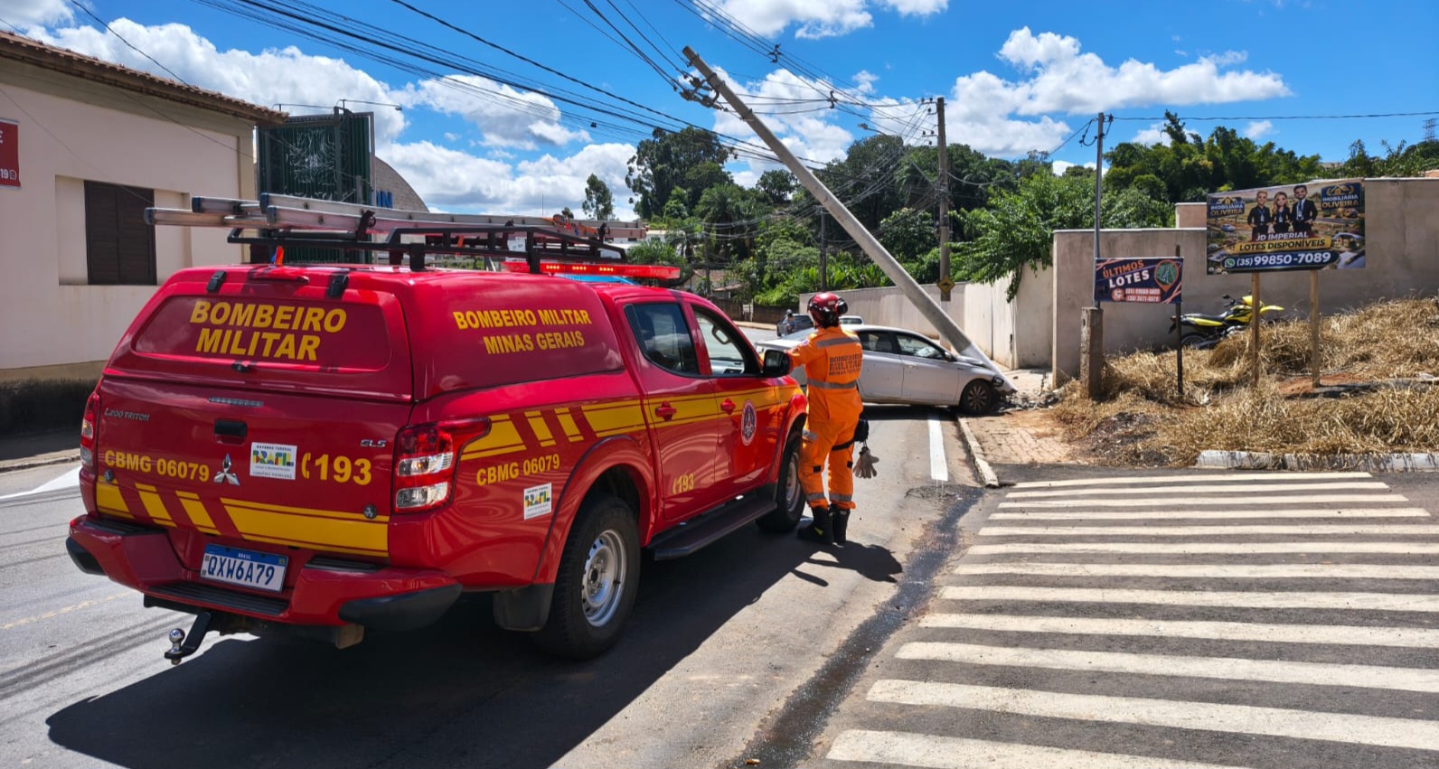 Ao chegarem à cena, os militares do 2º Pelotão de Bombeiros de Guaxupé constataram o perigo iminente de eletrocução, já que a fiação e o poste estavam danificados. A equipe realizou o isolamento imediato da área e acionou a CEMIG para proceder com o desligamento da rede elétrica, garantindo a segurança de pedestres e demais motoristas.