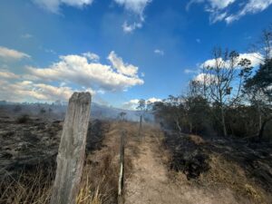A equipe da viatura A-05205, composta pelos Cabos PM Rodrigo e PM Bergamini, realizava uma fiscalização em uma área já previamente afetada por incêndios, quando constatou que o fogo havia sido novamente utilizado sem a devida autorização do órgão ambiental competente. Desta vez, a queimada danificou 0,35 hectare de vegetação nativa em estágio inicial de regeneração em uma área comum, além de atingir 10,39 hectares em área agropastoril.