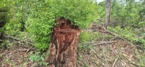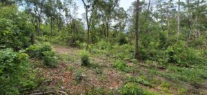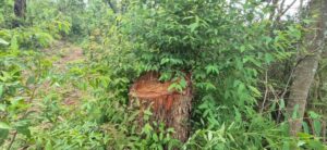 A equipe do Cb PM Ferris e Cb PM Diego Líria em resposta a uma denúncia de desmatamento, deslocou-se até o bairro Santa Isabel, onde confirmou o corte de 15 exemplares de Eucalipto (Eucalyptus spp.) inseridos na Área de Preservação Permanente (APP).