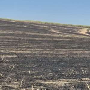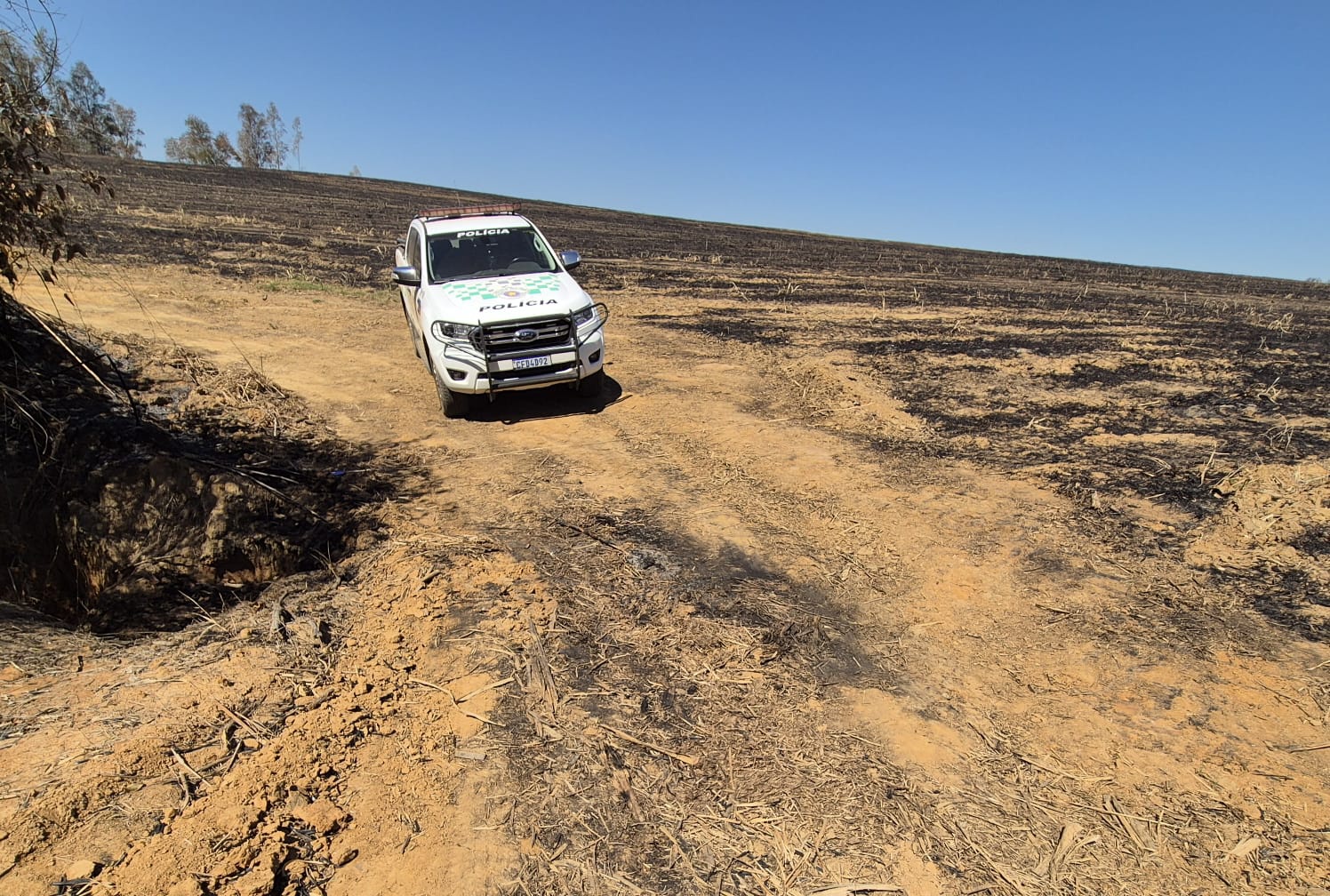 A equipe da viatura A-05207, pertencente ao 5º Batalhão de Polícia Ambiental, compareceu ao local e constatou que o fogo se alastrou pela plantação de cana já colhida.