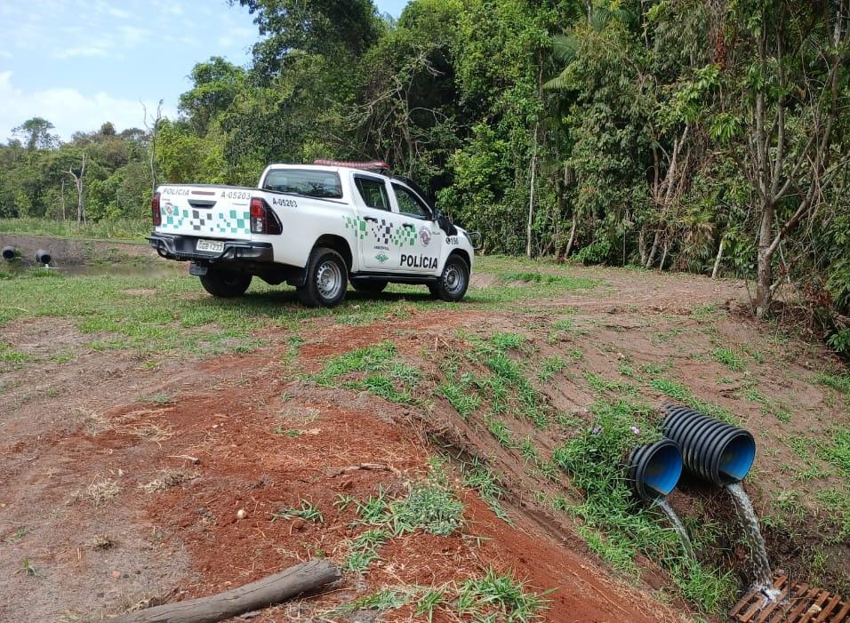 Em Leme, a fiscalização atendeu a uma solicitação do Ministério Público (MP) no bairro Recanto da Colina. A equipe da viatura A-05203 (Cb PM Cunha e Cb PM Silvério) constatou uma grave intervenção em curso d’água (APP).