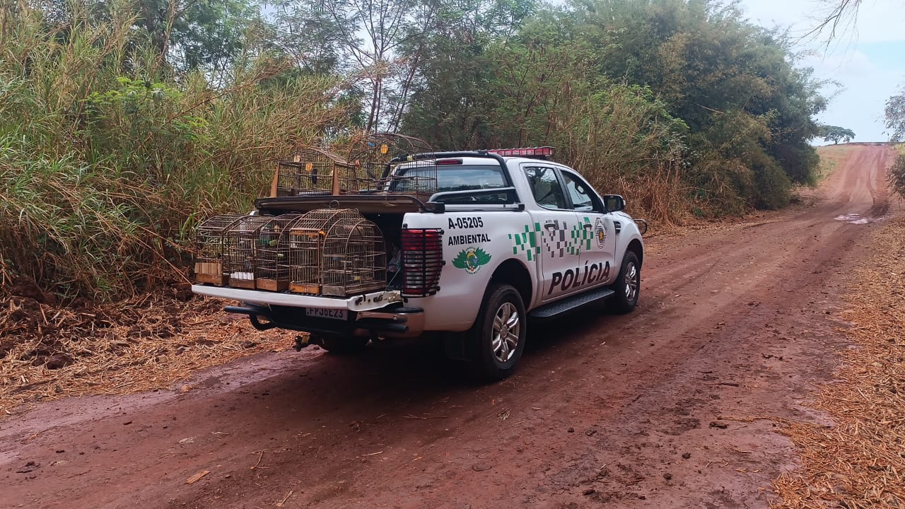 A Polícia Militar Ambiental (PMAmb) resgatou, nesta última sexta-feira (11/10/2025), um total de sete aves silvestres mantidas em cativeiro ilegal no bairro Parque São Paulo, em Santa Cruz das Palmeiras. A fiscalização, realizada em atendimento a uma denúncia, constatou que os animais estavam sem a devida licença do órgão ambiental competente.