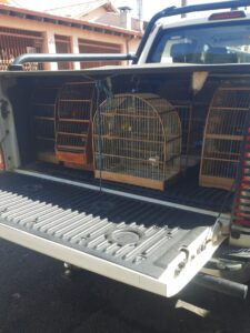 A equipe da viatura A-05208, composta pela Cabo PM Eduarda e pelo Soldado PM Monteiro, atendeu a uma denúncia e constatou a presença dos animais. Foram apreendidos um Azulão, um Trinca-ferro, uma Graúna, um Canário-da-terra, um Bigodinho e um Coleirinho.