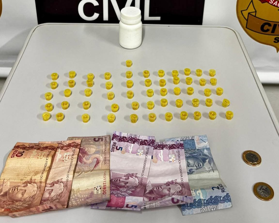 Durante a busca, os policiais localizaram 56 microtubos plásticos contendo substância semelhante ao crack, além de dinheiro fracionado e dezenas de eppendorfs vazios, indicando o preparo para a venda da droga.