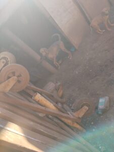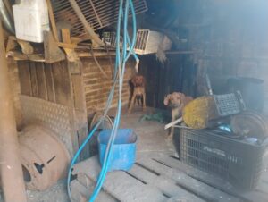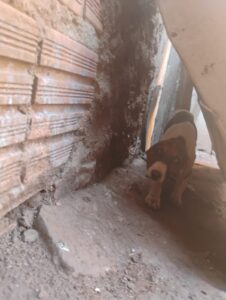 ​Ao chegarem ao local, os policiais da viatura A-05204 constataram a situação precária dos animais. Entre os cães encontrados, um filhote de aproximadamente 20 dias estava em estado crítico, extremamente fraco e sem conseguir se levantar, com risco de óbito.